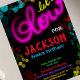 Celebrate your birthday party with our Neon Glow invitation. Ticket pass Features futuristic let's glow text on dark background. This trendy design is perfect for roller disco or glow party.
