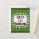 "Let's Go Bowling" is a cute text design with a white accent shape surrounded by white textured whimsical dots.