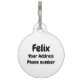 I looked through a lot of pet stores and web sites then I saw Zazzle and a tag with guitars in the background so we added his name and photo o nether front and our phone numbers on the back. It was beautiful and unique just perfect
