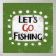 "Let's Go Fishing" is a cute text design with a white accent shape surrounded by white textured whimsical dots.