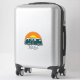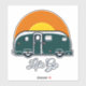 Camping lovers sticker. Cute for your car, truck or RV! Retro colours orange, yellow and blue retro camping RV.