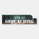 Let's go Geocaching! Upload your own trail photo to the background of this bumper sticker to create a one-of-a-kind statement for your vehicle! Perfect swag for Geocaching hobbyists, First To Find gifts, community events and more.