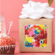 Excellent item. I used them for envelope sealers for a 50 year reunion whose mascot was a lion. Paper material is thick. Also, very colorful! Easy to peel and stick. Excellent! Excellent! Excellent!