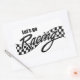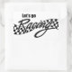 The phrase "Let's Go Racing" with a black and white chequered banner, that looks like it's blowing in the wind, behind it.
