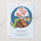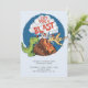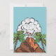 Lets have a blast volcano dinosaur birthday invitation. Cute dinosaur and volcano cartoons on a dark blue background