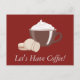 Invite a friend for coffee with this lovely burgundy coffee themed postcard. Displaying a cup of coffee with cookies on a red background, "Let's Have Coffee" is written in white italic font. Order yours today!