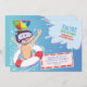 A child's, watercolor, pool party invitation featuring a youngster with a life preserver, goggles, snorkel and a beach ball splashing in the pool. (<a href='https://www.freepik.com/free-vector/watercolor-invitation-for-pool-party_1000984.htm'>Designed by Freepik</a>). <br/><br/>The card is easy to customise with your wording, font, font colour, paper shape options and choice of six paper types.<br/><br/>Not exactly what you're looking for? All our products can be custom designed to meet your needs at no extra charge.<br/><br/>Simply contact us at heartfelthelper@gmail.com.<br/><br/>Coordinating products available: Just ask us!