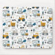 Check out this cute trendy design featuring fun moving vehicles.