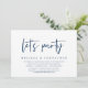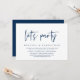 Modern Navy Blue Script themed, wedding elopement invitation card (Let's party). It is perfect for your wedding elopement casual lakeside wedding dinner, dancing and party.