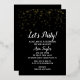 This Let's Party Gold Confetti on Black graduation party gold foil invitation is perfect for a classy graduation celebration, whether from high school, college, nursing school, grad school, or anywhere. The design features elegant real gold foil confetti on a black background with simple white calligraphy.