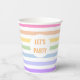 Let's Party in White Circle Pastel Rainbow Stripes Paper Cups