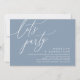 Mark the beginning of your forever with elegance using our romantic contemporary dusty blue theme wedding elopement happily ever after lunch, brunch, reception dinner party celebration invitation card, "Let's Party". Perfect for couples extending their joyous occasion, this invitation exudes sophistication with a hint of playfulness, setting the stage for a memorable event. Adorned with a timeless modern script design theme, it adds a touch of refined charm to your festivities. Crafted by TeeshaDerrick, this invitation promises to beautifully capture your love story.