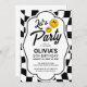 Let's Party Smile Face Retro Chequered Birthday Invitation