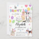Designed for our First Birthday collection, this customisable Invitation Card features balloons, dogs, colourful decorations & decorative fonts. Matching items available.