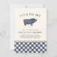 Hosting a BBQ or pig roast birthday party? Invite guests to "pig out" with you with these cool party invitations featuring a vintage style hog illustration and "let's pig out" arched across the top in black lettering. Add your event details beneath using the template fields provided. A plaid bottom border adds a rustic finishing touch.