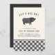Hosting a BBQ or pig roast at your house this summer? Invite guests to "pig out" with you with our whimsical and cute party invitations featuring a vintage style hog illustration and "let's pig out" arched across the top in black lettering. Add your event details beneath using the template fields provided. A plaid bottom border adds a rustic finishing touch.