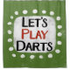 "Let's Play Darts" is a cute text design with a white accent shape surrounded by white textured whimsical dots.
