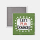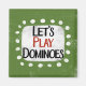 "Let's Play Dominoes" is a cute text design with a white accent shape surrounded by white textured whimsical dots.