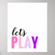 "Let's Play" playroom print featuring a pink and purple colour scheme. Check out our Nursery & Playroom Prints collection for coordinating items and other colour schemes.