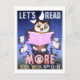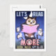 This postcard is a reproduction of a vintage Book Week poster showing a group of owls and saying, "Let's read more."