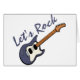 A blue guitar and the saying, Let's Rock is perfect for rockers. A guitar design that is available on a variety of t-shirts and gifts for rock stars. Great gifts for music lovers.
