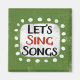 "Let's Sing Songs" is a cute text design with a white accent shape surrounded by white textured whimsical dots.