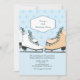 A winter sport invitation to celebrate a birthday on ice. Suitable for boys and girls. The light blue background features stars and white and tan skates.