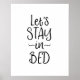 Let's stay in bed black and white bedroom print features modern hand written typography in black and white.