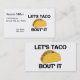 A funny way to say, let's talk about it. Featuring a yummy taco! So hey, LET'S TACO BOUT' IT instead. Sounds more fulfilling don't it?