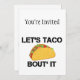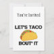 A funny way to say, let's talk about it. Featuring a yummy taco! So hey, LET'S TACO BOUT' IT instead. Sounds more fulfilling don't it?