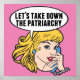 Let's Take Down the Patriarchy gift. Cute retro pop art feminism poster in cool pink for a strong pro choice woman voting for female leadership in our country. Stand up for women's rights and female empowerment with this awesome political humour cartoon that features a pretty blonde leader planning a women's march on a vintage telephone with a funny quote in a talk bubble.