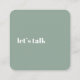 Simple and contemporary, this design portrays a professional image. Chic typography "let's talk" on a modern sage green background. Easy template to customise with your business information.