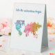 Set the mood for wanderlust with this "Let the Adventure Begin" Geometric World Map Table-Tent Sign. Featuring a sleek geometric-style world map and clean modern typography, it's an elegant travel-themed accent for tablescapes, party décor, seating charts, or inspirational displays. Sturdy and easy to position, this tabletop sign brings a contemporary, globe-trotting vibe to weddings, showers, or office desks.