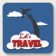 Retro style "Let's travel" illustration with aeroplane decoration on the cloudy sky