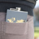The flask itself is fine. It’s a cheap flask, obviously bought in bulk, however am prepared to overlook that. Given that it is a personalized item, I would have liked to have seen gift boxing instead of the generic packaging. Terrible printing, and/or quality. It’s a cheap, tacky vinyl. It is not cut straight and is also applied in a way that it is overhanging the bottom, causing the glue to catch on items and it will eventually roll and tear, damaging the wrap.
