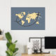 Let's travel illustration with world map and aeroplane decoration on blue background for everybody who likes travelling.