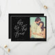Sometimes things change. Update your wedding guests with your new wedding date with our modern save the date card. The design features a simple and modern layout with "Let's try this again" displayed in modern calligraphy. Simple black background with couple's name, and wedding date, and location, and photo.