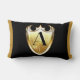 This lumbar pillow displays the capital Letter A inside of a golden coloured elegant decal with a unique font over the front and back panel with soft wrinkle-free knit fabric has a hidden zipper enclosure including synthetic-filled insert. All pillow are made from 100% polyester with high quality sublimation double-sided printing.