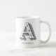 Customisable white coffee mug featuring the letter A in unique grey coloured typography. Add your name using the personalisation feature.