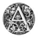 This initial A is part of a complete series of upper case William Morris inspired typography initials. The black and white lettering is highly decorative, styled after the fancy typography of the middle ages. Cute and trendy, this is a vintage chic monogram A - letter A- swirly A . Customise this vintage monogram by changing the background colour; just choose "edit design", and edit background colour.
