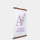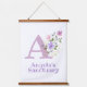 Initial & Name with Floral Design on a Wall-Hanging Tapestry. Design features the recipient's Monogram & Name with Flowers either side in a water colour pastel style. Initial is the letter A. Example shows Angela.