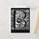 The letter B on a bold black and white card with an ornate swirl design. It has the appearance of antique woodblock art. If you're looking for a unique, signature design for all your correspondence needs, you can't go wrong with this one. Available on greeting cards, notecards or postcards. Envelopes included with greeting and notecards (no envelopes with postcards). Blank inside. Buy in bulk to save.