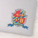 Knights style shield crest monogram letter B graphic art stickers in shades of red, blue and grey. Personalise with your own name or family name beginning B, currently reads Anthony. Ideal for personalising your belongings if your surname or first name begins with the letter B. Unique eagle head, crown, and shield crest drawing and graphic art and design by Sarah Trett for www.mylittleeden.com