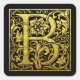 Letter B First Letter Faux Gold Black Square Sticker