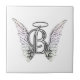 Letter B Initial Monogram with Angel Wings & Halo Ceramic Tile