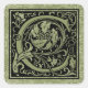 Charming decorative letter C initial monogram calligraphy style typography first letter in black over vintage avocado green book lining with off white Ginkgo biloba leaves.