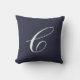 Personalised monogram pillow with a classic script letter C on a Navy Blue background. Made in the USA from machine washable cotton or polyester. Perfect for Caitlin, Caroline, Cassandra, Catherine, Chelsea, Cheyenne, Christina, Courtney, Crystal or anyone else who's name has an initial C.