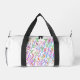 I actually had been searching other sites for a duffle gym bag and I couldn't find any. This one is just what I was looking for with all the features. The inside zip pocket, the outside mesh pocket and LOTS of room inside. Love the printing. Really like how the floral print turned out.