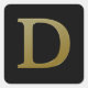 Gold capital letter D in faux gold bronze font. Metallic look achieved using highlights and shadows in yellow, brown and grey tones. Set on solid black and can be customised with the background colour of your choice.