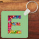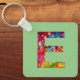 Letter "E" in decorative style with bright, colorful plants. Keyring is suitable for names Emilia, Emma, Ella, Elias, Evelyn, Elizabeth, Eleanor, Emily.